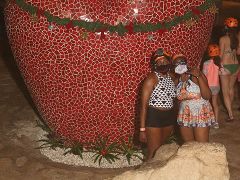 One of the most popular attractions at Xcaret eco theme park is their underground river. The river winds its way through naturally formed caverns and caves under Xcaret. The water is a crystal clear aquamarine, and you can even find little fish along the bottom. Floating from beginning to end can take about an hour, however there are numerous locations along the way to get out if you want to.